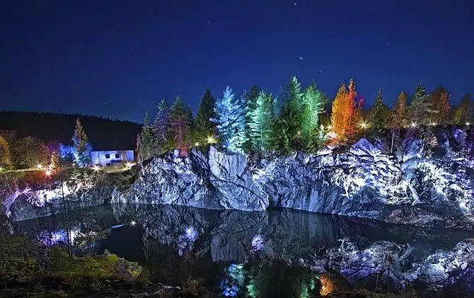 Горный парк «Рускеала» ночью.
