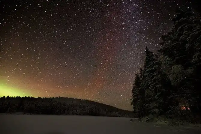 Северное сияние и звездное небо над Карелией.