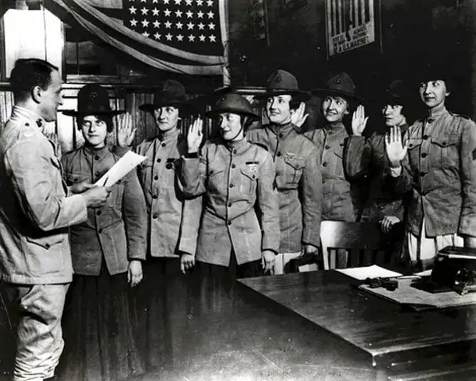 Одни из первых женщин, присягнувших в корпус морской пехоты США. Август 1918 года.