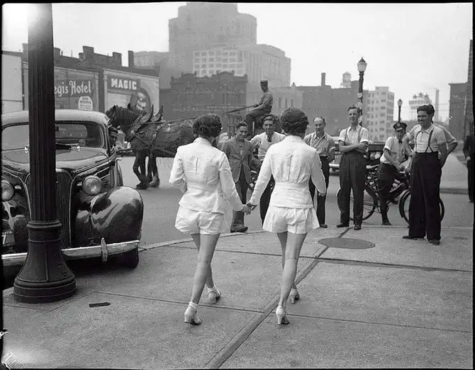 Две девушки впервые предстали на публике с обнаженными ногами. Торонто. 1937 год.