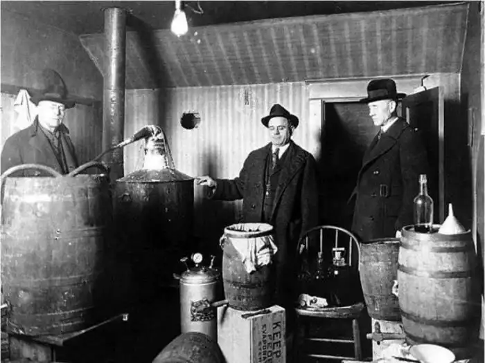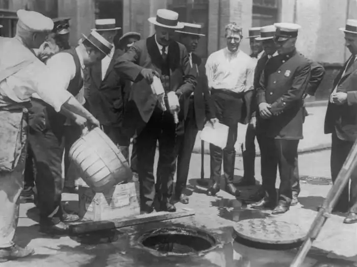Интересные архивные кадры времен сухого закона в США, после введения которого в Америке начался настоящий бум подпольных самогонщиков, которые производили алкоголь, рискуя своей свободой.