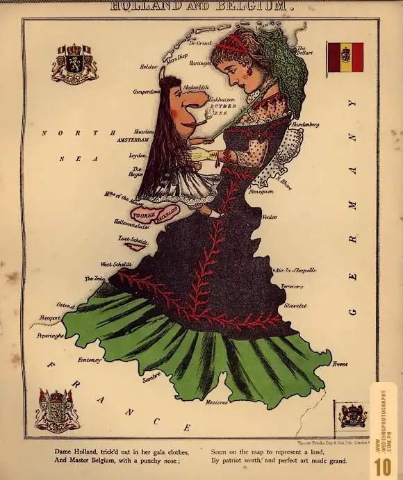 В американской библиотеке Конгресса хранится большое количество разных карт мира и отдельных государств. Например, здесь есть оригинальная карта Европы под названием «Geografical fun». Выпущена она была в 1868-м году, ее автором был некий Алеф. Забавную карту Европы напечатало лондонского издательство Hodder and Stoughton. Здесь каждая страна представляет собой весьма характерный персонаж и этот образ сопровождается смешным четверостишьем.