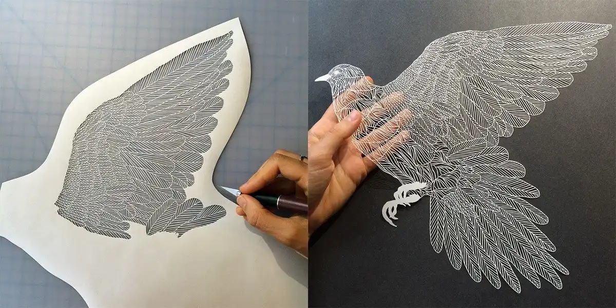 Уайт все делает вручную, вырезая при помощи ножа для бумаги сложнейшие изображения. «Я испытываю огромное уважение к бумаге. Когда я вырезаю тонкий перепончатый материал, он раскрывает мне свою силу» — рассказывает художница на своем сайте. «Бумага везде, и она рассказывает истории в течение уже многих веков».