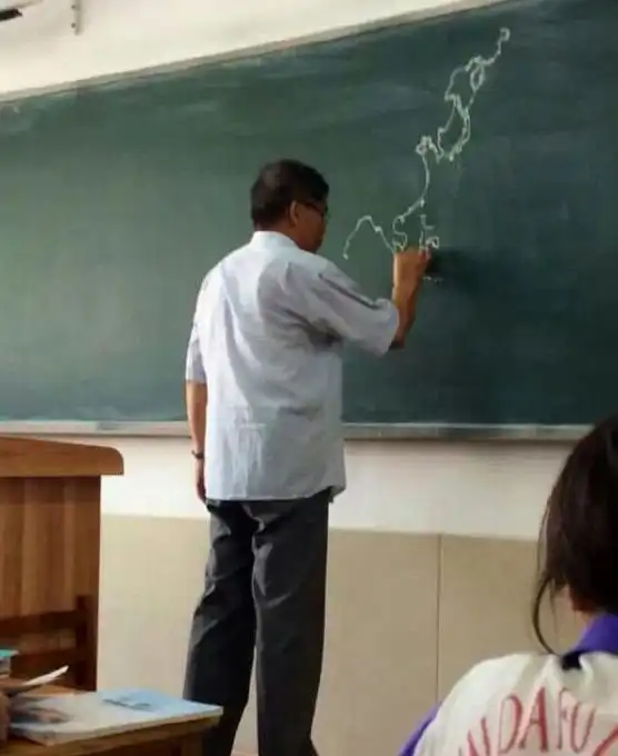 Учитель географии одной китайской школы забыл (пропил, отняли, директор не выделил средств и т.д.) принести карту мира. Но ведь детям надо знания давать. Смотрим как он выкрутился.