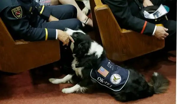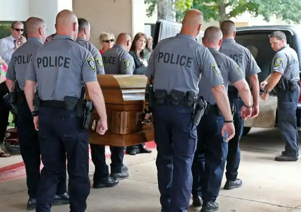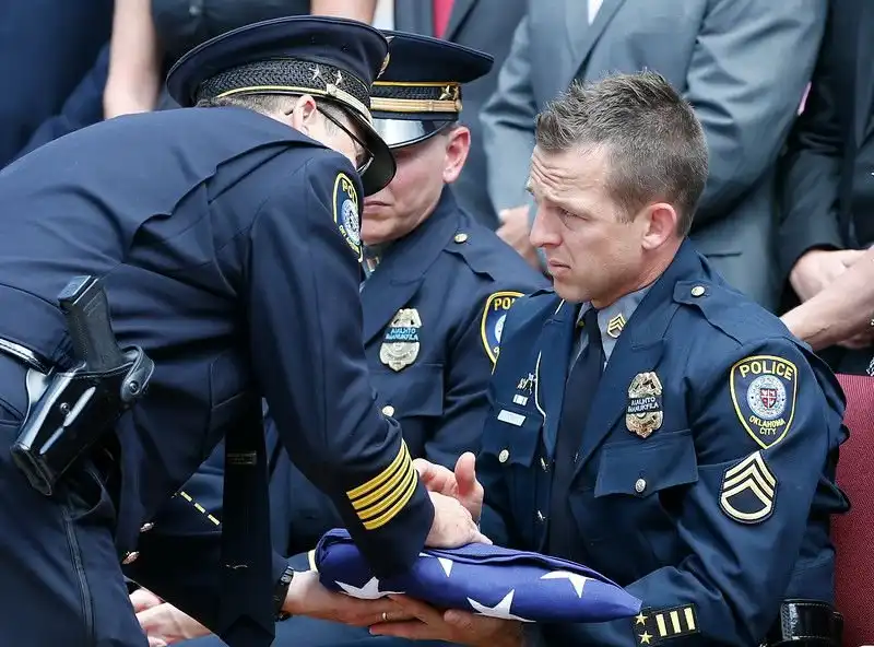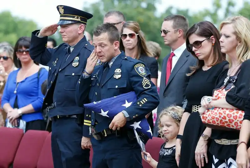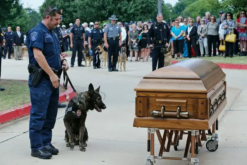 Департамент полиции Оклахома-сити попрощался с одним из своих сотрудников. Офицер отделения К-9 Кай скончался от ран, полученных при задержании опасного преступника. В последний путь своего четвероногого напарника проводил сержант Райан Старк и его сослуживцы.