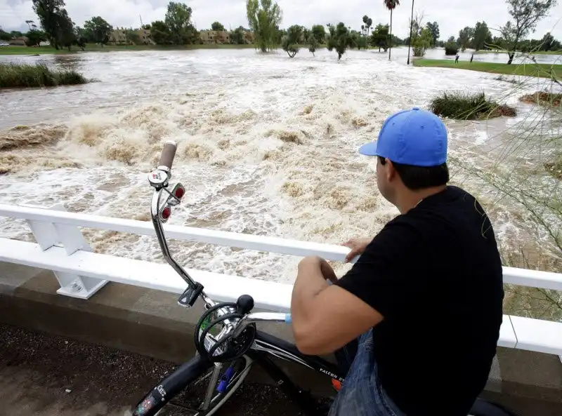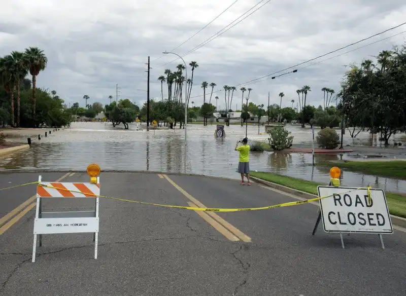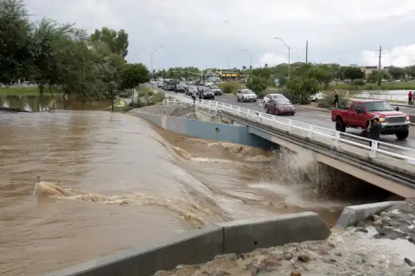 Проливные дожди, прошедшие в понедельник 8 сентября в Фениксе, США, стали рекордными по количеству осадков за один день и вызвали сильное наводнение.