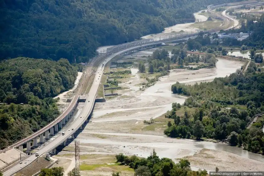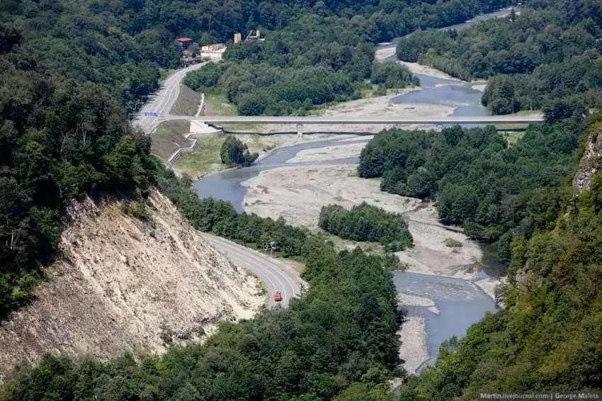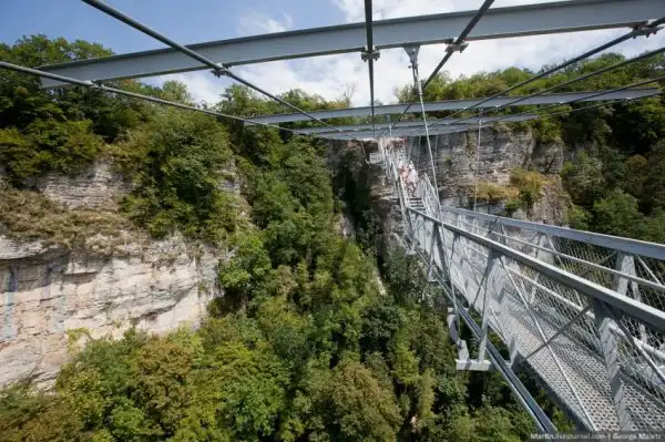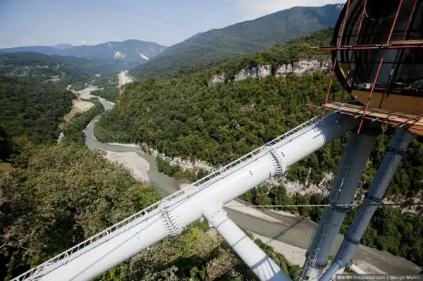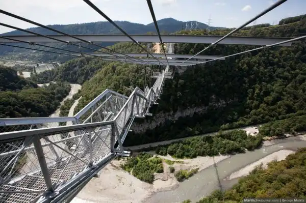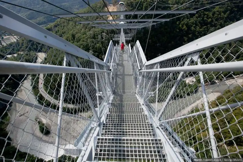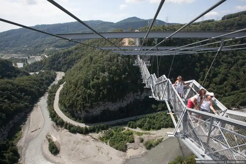 Даже если вы не склонны к экстремальным развлечениям, в парк стоит прийти хотя бы ради смотровых площадок на подвесном мосту. Оттуда открываются потрясающие панорамные виды на горы, море и окрестности. Можно разглядеть даже стадион «Фишт».
