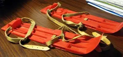Короткие пластиковые лыжи. Я зимой вообще их не снимала, ну кроме случаев когда не было снега))).