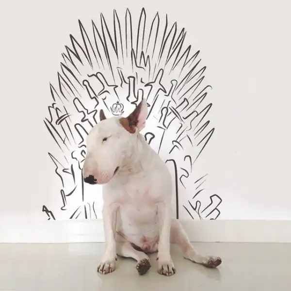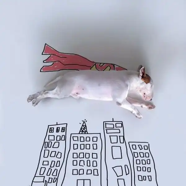 Художник Рафаэль Мантессо создает прекрасные иллюстрации со своим бультерьером Джимми Чу в главной роли, которые выкладывает в своим Инстаграм-аккаунте. Песик уже побывал в образе Малифисенты, Супермена, Венеры Ботичелли и акулы из фильма "Челюсти". То ли еще будет.