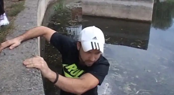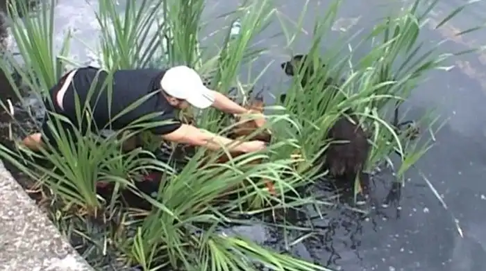 Прогуливаясь теплым осенним днем по парку в Румынии, молодая пара заметила в заброшенном озере какое-то движение. Подойдя поближе, стало ясно, что это две несчастные собаки, которые попали в неприятную ситуацию.. Из-за высоты стенок искусственного озера у собак не было ни единого шанса выбраться оттуда самостоятельно.