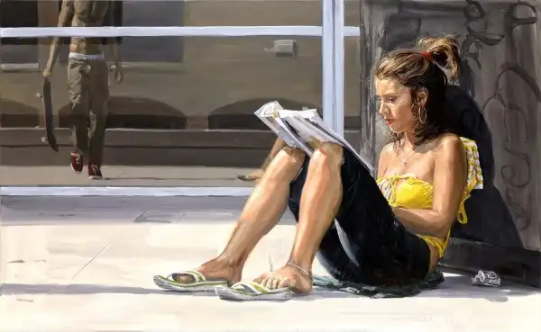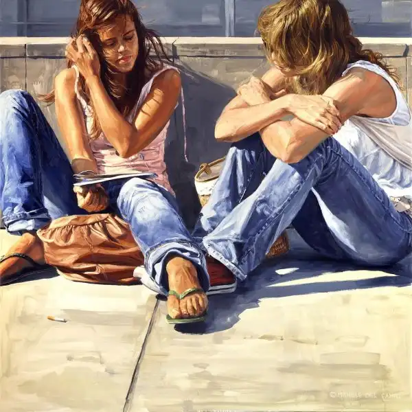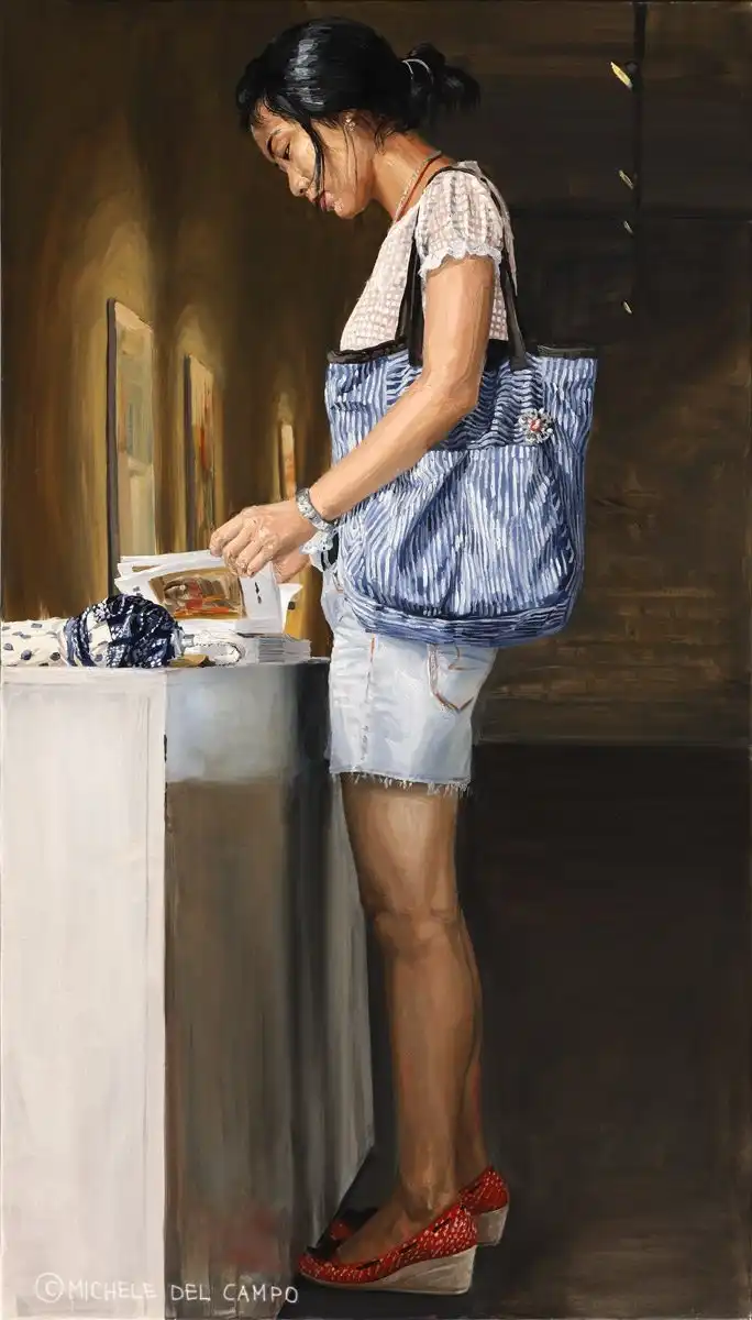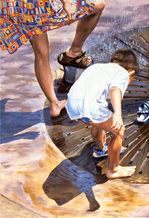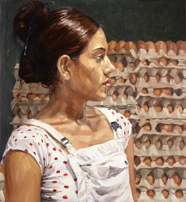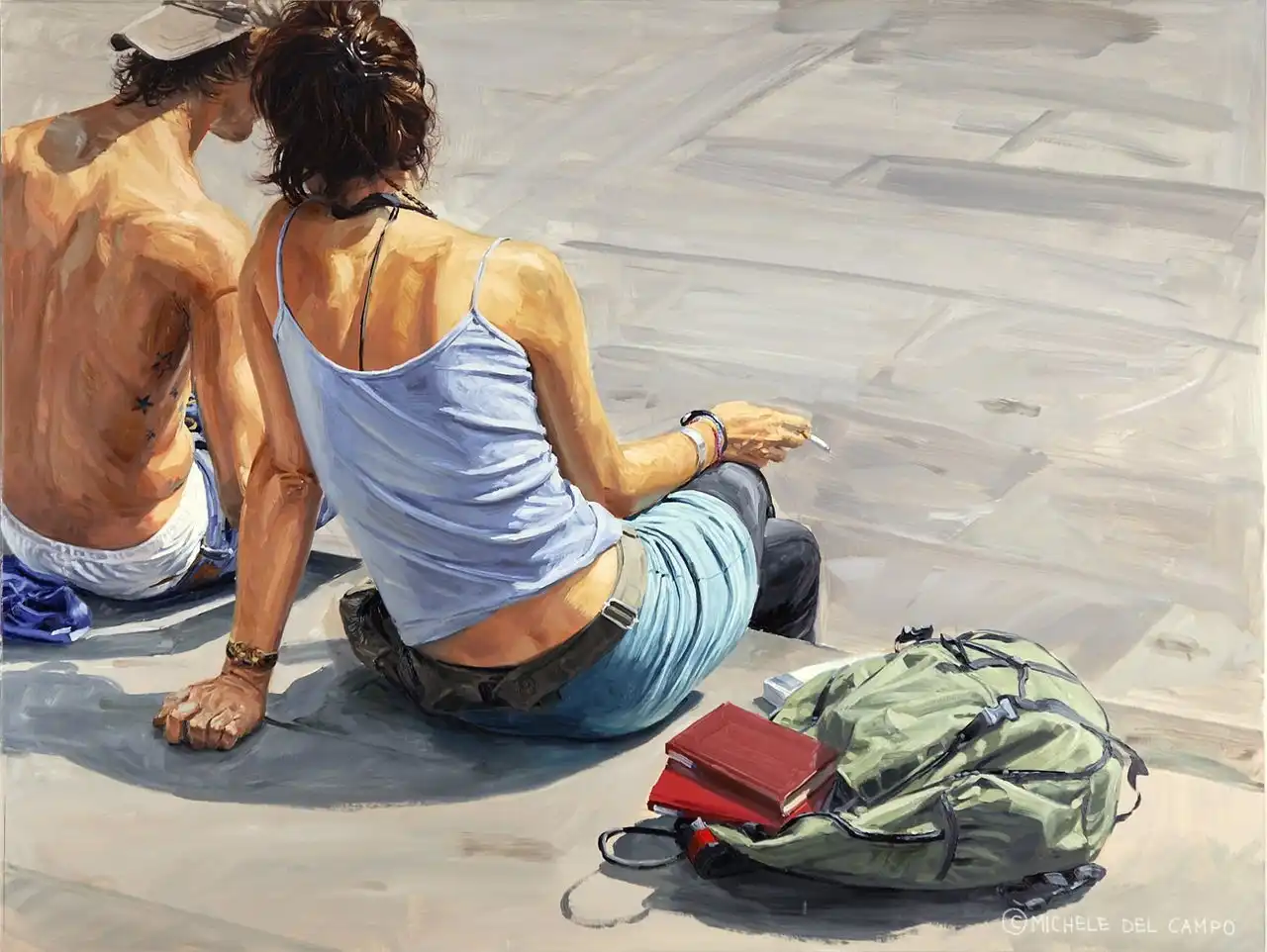 Его работы нельзя назвать гипер- или фотореализмом, скорее всего это просто такая манера изображения, своеобразный почерк мастера живописи. Главная тема его картин - это жизнь молодёжи. Этакая повседневность будто бы запечатленная на плёнку. Такие сюжеты (что не являются эмоциональными сценами) очень редко встречаются в творчестве художников мира, однако Michele Del Campo выбрал именно их для выражения своего искусства. Работы действительно очень красивы, а главное сразу видно - это далеко не стилизованный фотореализм, а тёплая живопись маслом.