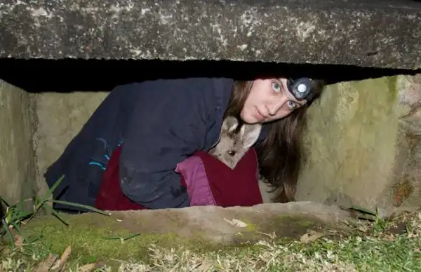 Спасение кенгуру, который упал в дренажную канализацию