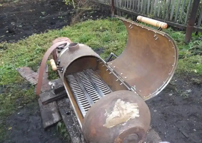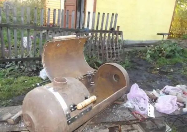 Фотоотчет о том, как один парень сделал своими руками удобный и функциональный мангал-барбекю из подручных средств.