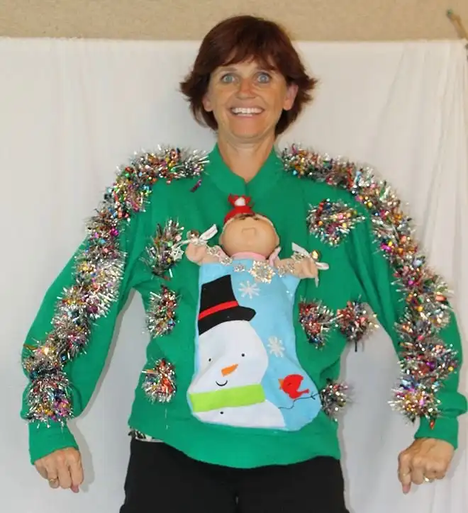 Знакомьтесь: эту дамочку зовут Деб, и она зарабатывает на жизнь продажей на eBay свитеров собственной вязки. Не знаю, насколько хорошо у нее идут дела, но рекламирует свои изделия на интернет-аукционе она регулярно. Причем в качестве модели выступает сама.