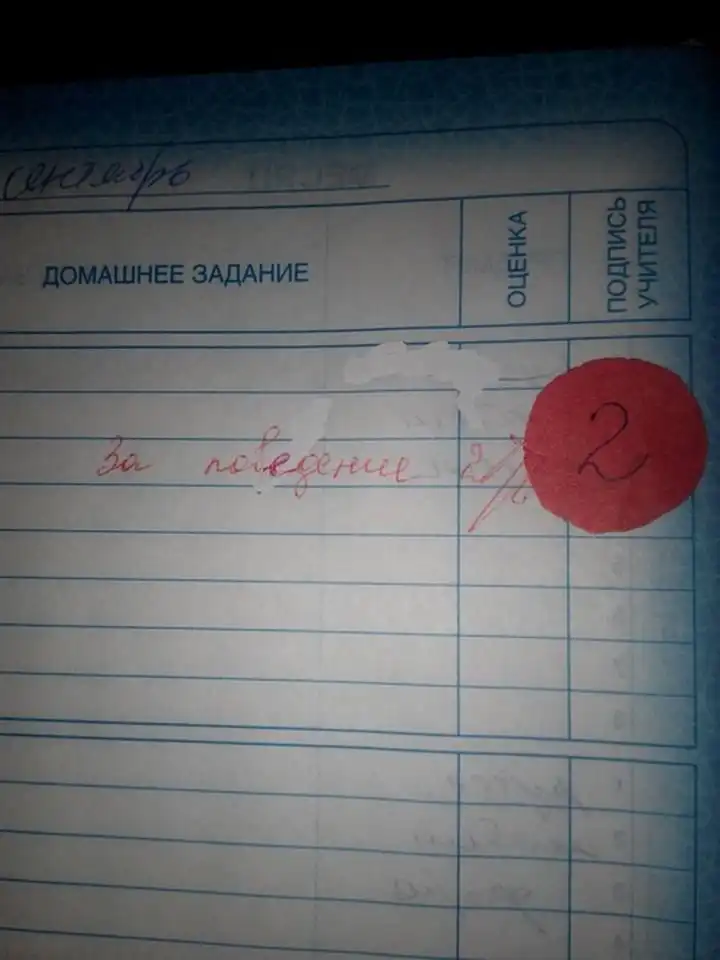 Памятуя о своей первой оценке в первом классе, в далеком 87 (тоже 2 по поведению), сильных репрессий было решено не проводить. Ограничился беседой и взятием обещаний исправитЬся.