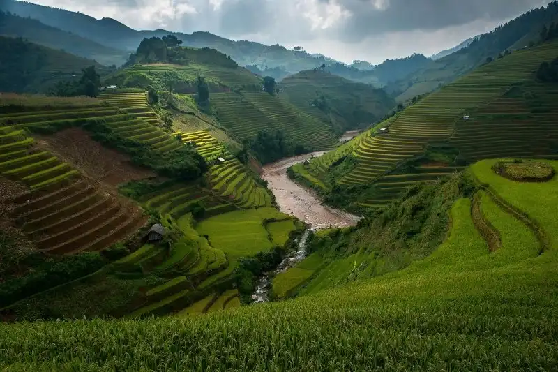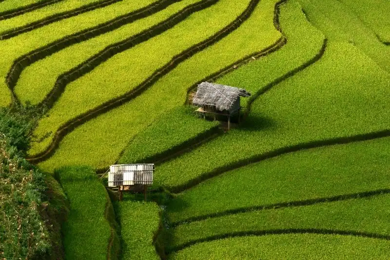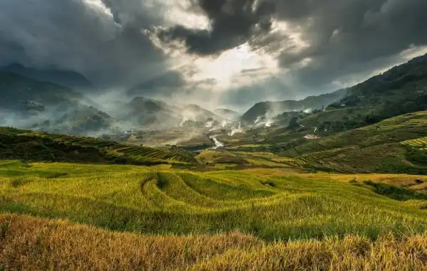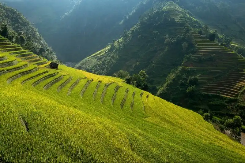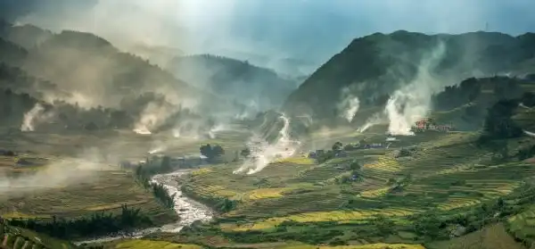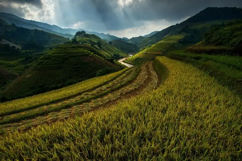 Фотограф Саравут Интароб (Sarawut Intarob) сделал замечательные фотографии в живописных просторах Новой Зеландии, Таиланда, Непала и Тибета, но эти рисовые поля во Вьетнаме исключительно прекрасны. Контраст между затянутым голубой дымкой небом и слоистыми зелёными склонами постоянно привлекает туристов. Местные фермеры затрачивают массу усилий на создание таких художественно выглядящих рисовых террас с аккуратными линиями