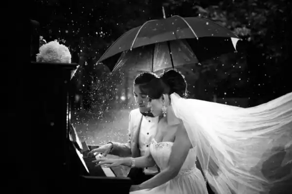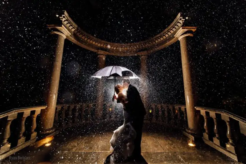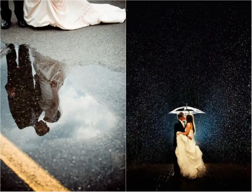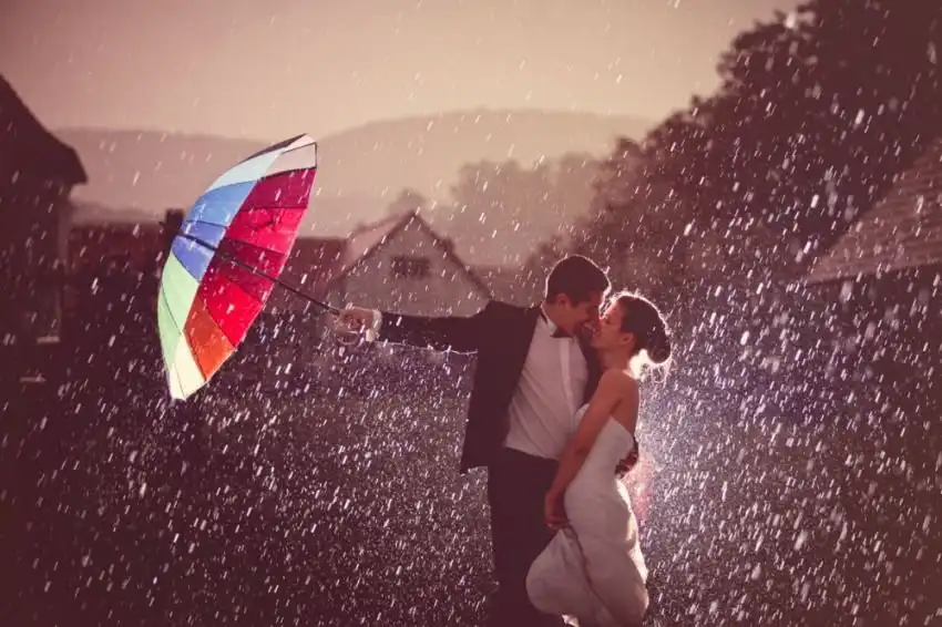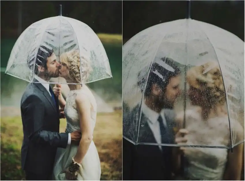Дождь в день свадьбы — это не только хорошая примета для молодоженов, но и отличный шанс для фотографа сделать по-настоящему шикарные снимки. К тому же в дождливую погоду фотографии получаются особенно красивыми и романтичными. Получить такие кадры непросто, но зато они будут стоить каждой минуты, проведенной с мокрыми ногами.