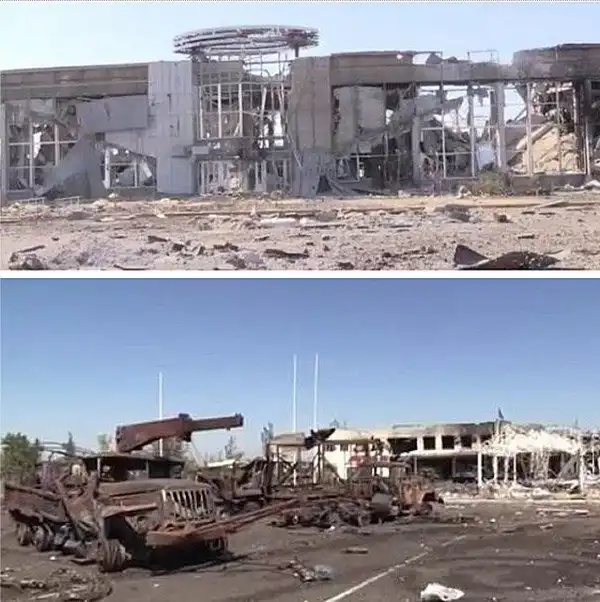 Перед вами - аэропорт города Луганск, вернее, каким он был еще пару месяцев назад. Сейчас, после затронувших его боевых действий, аэропорт выглядит совсем иначе и теперь здесь можно разве что снимать фильмы про Апокалипсис - здания разрушены, самолеты сожжены, взлетная полоса поросла травой. Руины и выжженная земля. Жуткое и печальное зрелище.