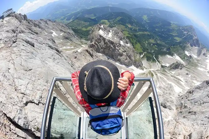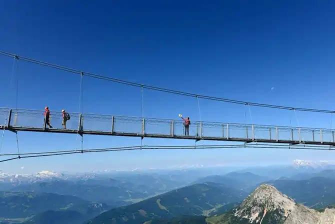 Подвесной мост «Небесная прогулка» находится на высоте примерно 2700 метров, недалеко от горной станции. Он был сконструирован в 2005 году. Смотровая площадка моста представляет собой балкон на отвесной скале Хунеркогель. Пол на этой площадке частично сделан из стекла, и находится она значительно выше, чем смотровая площадка у Ниагарского водопада в Америке или у водопада Игуасу в Бразилии.