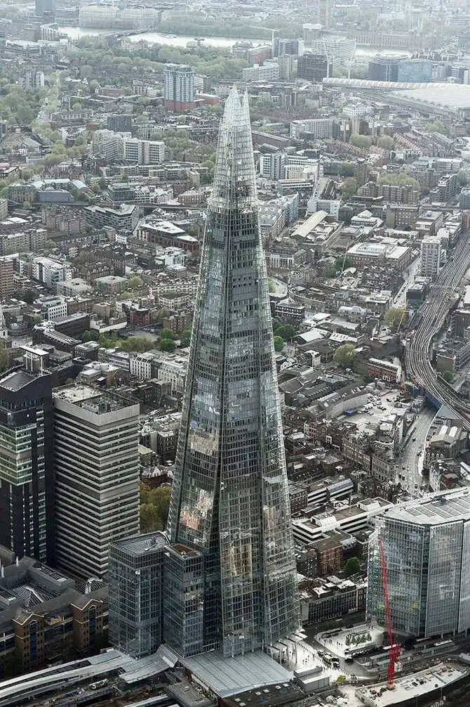 Башня Шад, еще называемая Осколком, представляет собой 87-этажный небоскрёб в Лондоне. Возведение небоскрёба началось в марте 2009 года, строительство каркаса завершилось 30 марта 2012 года, и 5 июля башня была открыта. Все работы были полностью завершены к ноябрю, а 1 февраля 2013 года открылась смотровая площадка.