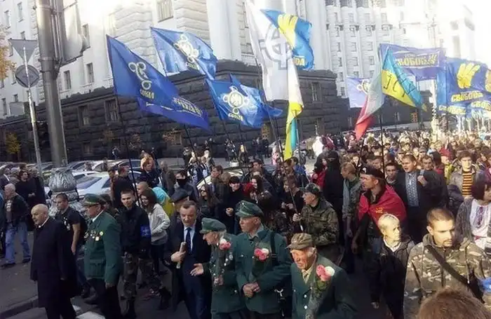 14 октября, в честь празднования 72-й годовщины образования Украинской повстанческой армии (УПА), в большинстве городов Украины прошли марши с участием ветеранов УПА, местных националистов и радикалов, а также военных и людей в военной форме давно минувших лет. В самых крупных городах все прошло с широким размахом, местами даже мелькали портреты Гитлера и немецкая свастика.
