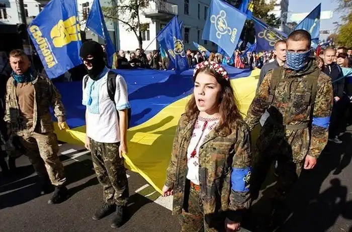 Помнящая «подвиги» дедов, молодежь несла плакаты, размахивала флагами «Правого сектора», партии «Свобода» и, конечно же, национальным украинским флагом. Не обошлось и без традиционных кричалок: «Слава УПА!», «Слава Бандере!», «Бандера – наш герой!».