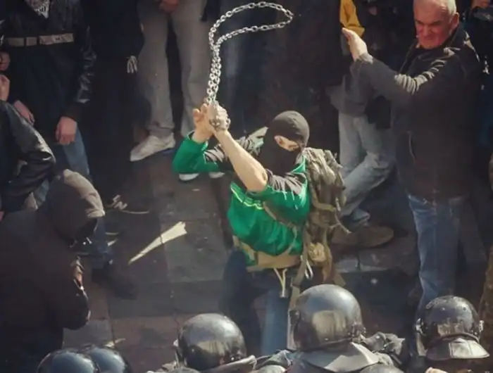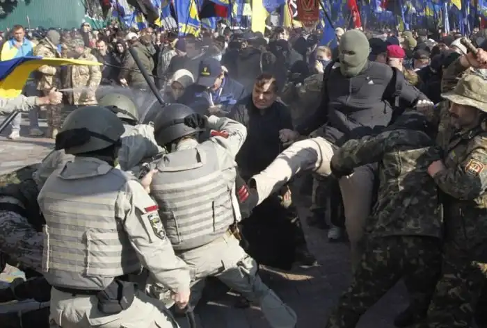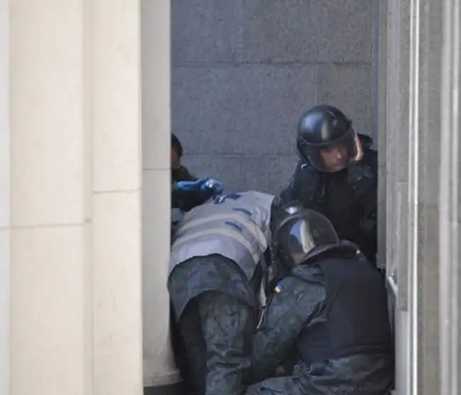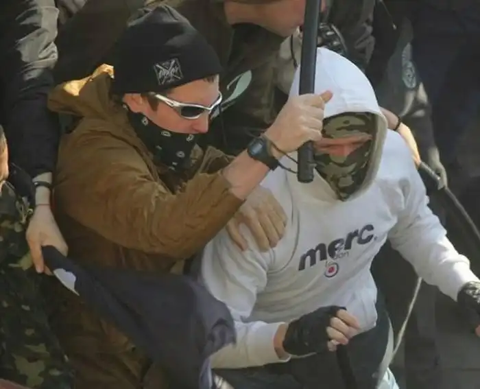 Имели место быть и различные происшествия, так в Киеве возле Верховной рады молодые парни с закрытыми лицами устроили беспорядки.