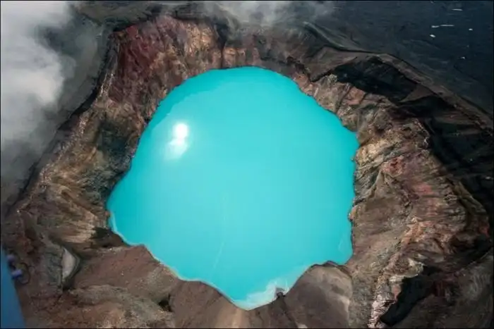 Кислотное озеро в кратере вулкана Малый Семячик на Камчатке