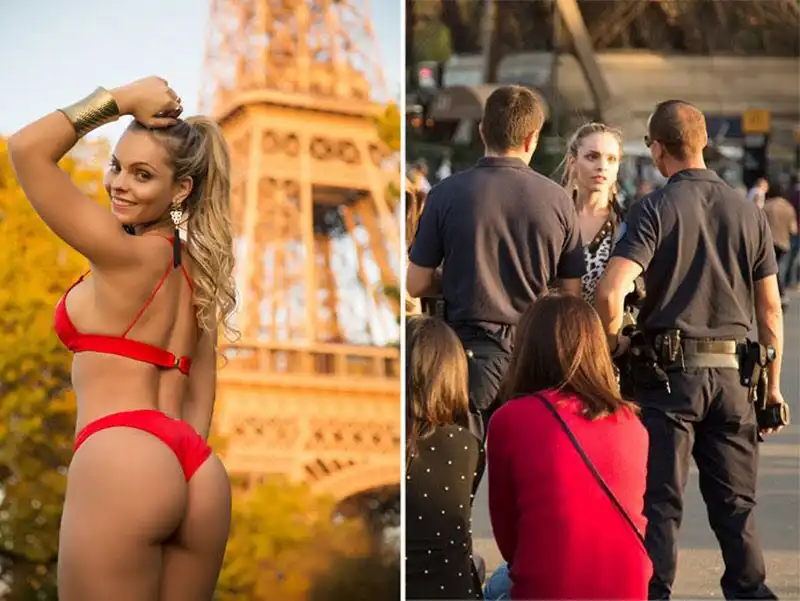 Одна из главных претенденток на победу в конкурсе «Мисс бразильская попка-2014», 22-летняя Индинара Карвальо, несмотря на запрет полицейских, устроила пикантную фотосессию у главной французской достопримечательности.