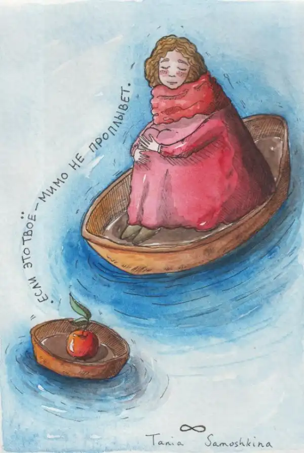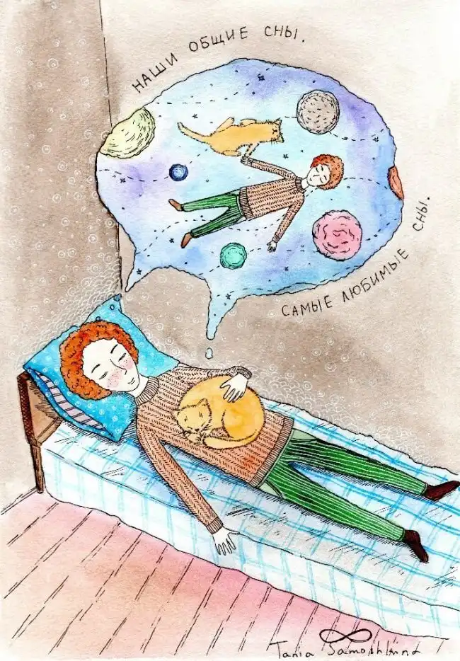 Художница Татьяна Самошкина создает на бумаге теплые, немного наивные, но бесконечно добрые миры. В них всего понемногу: есть уютные коты и милые лисы, завитки морских волн и вспышки далеких звезд, чуть-чуть одиночества и грусти — только очень светлой. Таня — непрофессиональная художница, однако видимая простота ее образов нисколько не умаляет их обаяния. Эти рисунки как чашка согревающего чая после прогулки под моросящим осенним дождем.