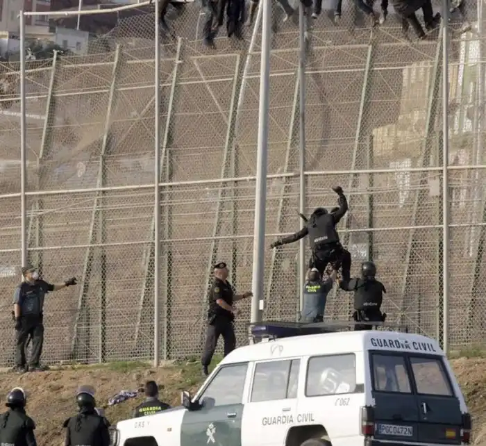 Описанная ниже история произошла в середине августа этого года, но как говорят правоохранительные органы, подобное здесь происходит, чуть ли не каждую неделю. Два семиметровых забора с армированной колючей лентой в течение 16 часов пытались преодолеть около 800 молодых людей, но получилось это сделать только 30-ти из них. Остальные залезли по сетке на забор и стали сидеть на нем. Скорее всего, отчаявшиеся африканцы надеялись на то, что Национальная гвардия перестанет их поджидать и разойдется. Те, кто спустился с забора на испанскую землю, были отправлены в Центр Временного Пребывания Иммигрантов.