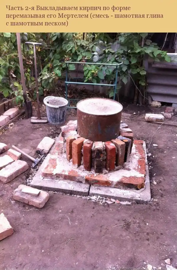 2) Кирпич в тандыре не ставится стоймя с такими дикими промежутками, а кладется "колодцем" с обязательной перевязкой рядов.