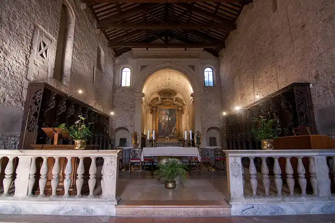 Именно на этом месте святой Фермо и святой Рустико приняли мученическую смерть в III в. Существующий верхний храм построен францисканцами в XIII-XIV вв. Под ним частично сохранился старый храм, выстроенный бенедиктинцами в XI в. Апсида и боковые фасады церкви украшены в XV в.
