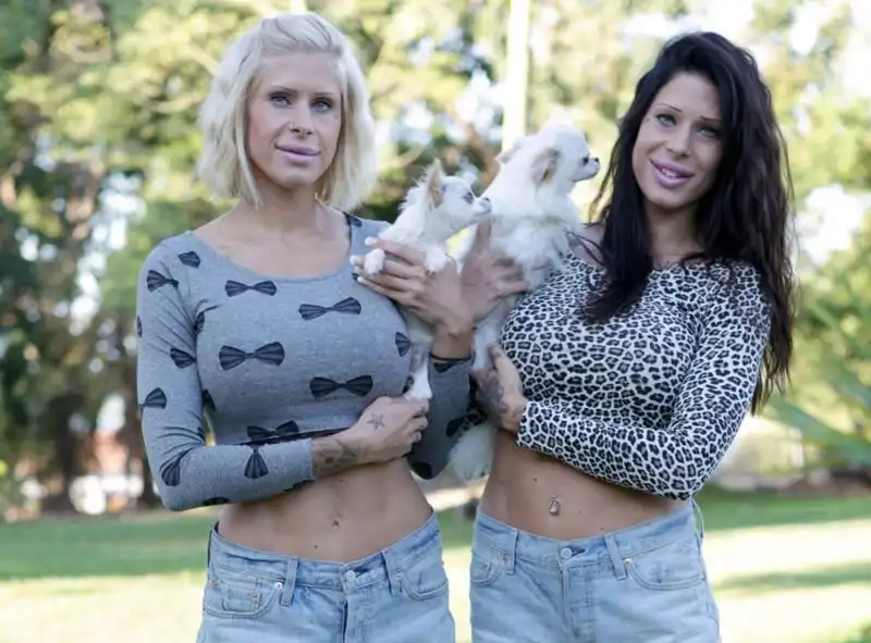 25-летние близняшки Эмма и Сара Копонен из Швеции потратили на двоих порядка 25 000 долларов, чтобы вставить себе силиконовые имплантаты и накачать губы. Теперь девах можно смело называть прокачанными муклами. С другой стороны, чего их судить - у каждого свои тараканы в голове. Сейчас сестры живут в Испании и радуются жизни.