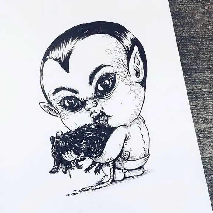 В этот раз Алекс Солис (Alex Solis) изобразил всех героев жутких фильмов в младенчестве. Вы же мечтали посмотреть на маленького Фредди Крюгера или на девочку из Звонка, когда та еще не умела ходить? Среди работ Алекса есть даже Дракула!