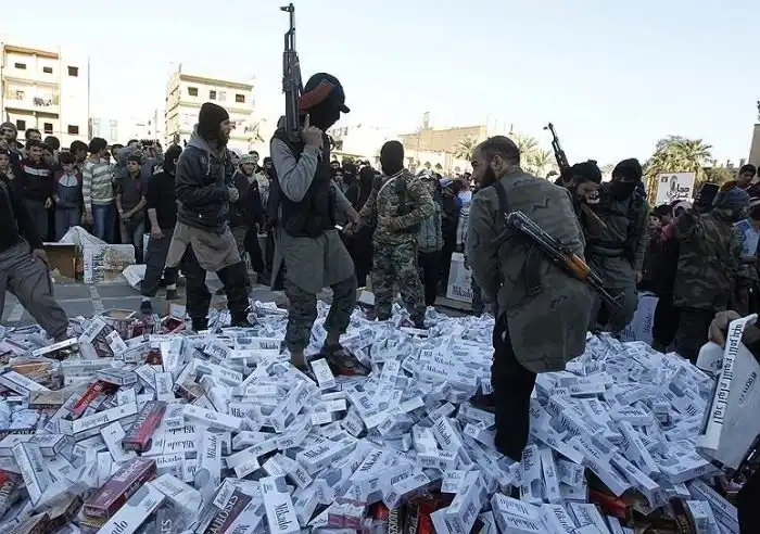 Люди, нанятые «Исламским государством» для контроля качества продуктов, выбрасывают некондиционные товары, конфискованные из магазинов