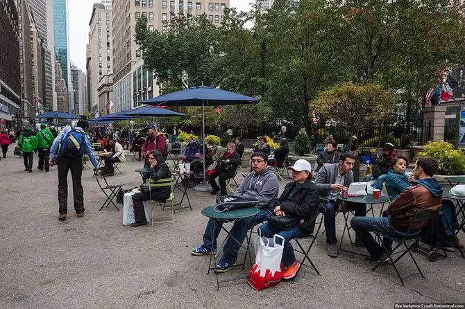 Знаменитые нью-йоркские общественные стулья и столики. Они повсюду.