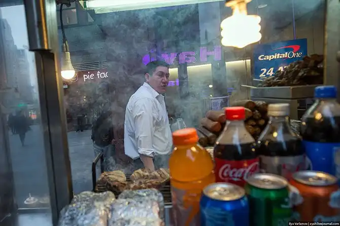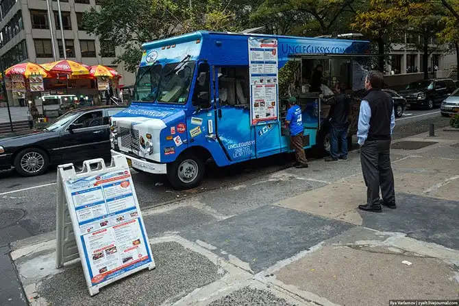 На каждом шагу на Манхэттене продают фастфуд из таких вот фургонов.