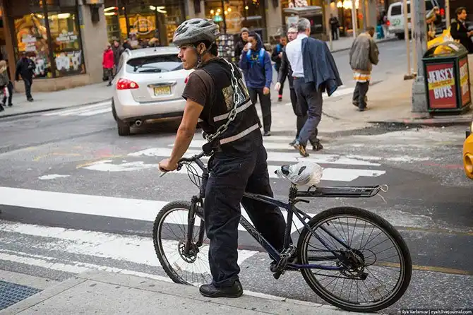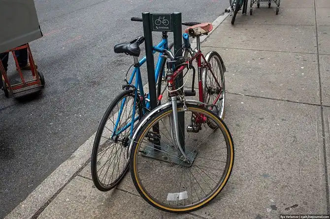Велосипеды в Нью-Йорке воруют. Чтобы защитить свое имущество, нужно иметь хорошую цепь.