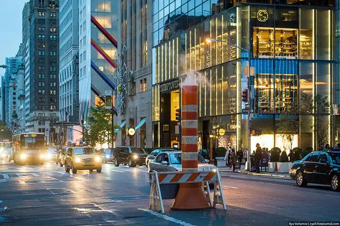 Еще один символ Нью-Йорка – вот такие трубы, отводящие пар из подземелья