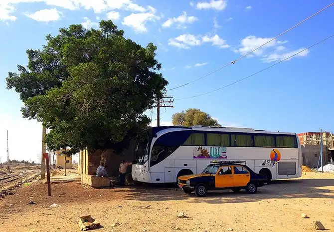 Один раз я увидела чистую машину снаружи и внутри, и даже под ногами лежали картонки. Старое Пежо 78 г выпуска. С пожилым таксистом мы договаривались за сутки вперед о поездке в Эль-Аламейн из Александрии. Стоило это удовольствие каких-то 40 евро за 250 км пути, катались с 11 утра до 18 вечера. И по пути ждал бонус — водитель купил бананов и фиников, чтобы угостить нас