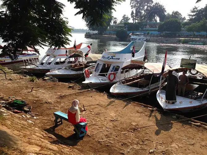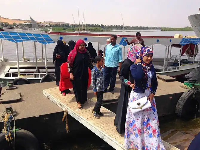 В Асуане к Сахаре мы переправлялись по Нилу на этой лодке. Стоит 10 центов проезд. Набивают людей по максимуму, отчего сами арабы нервничают и просят быстрее отправить паром.