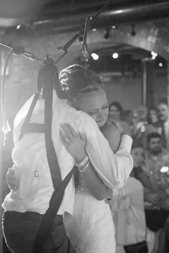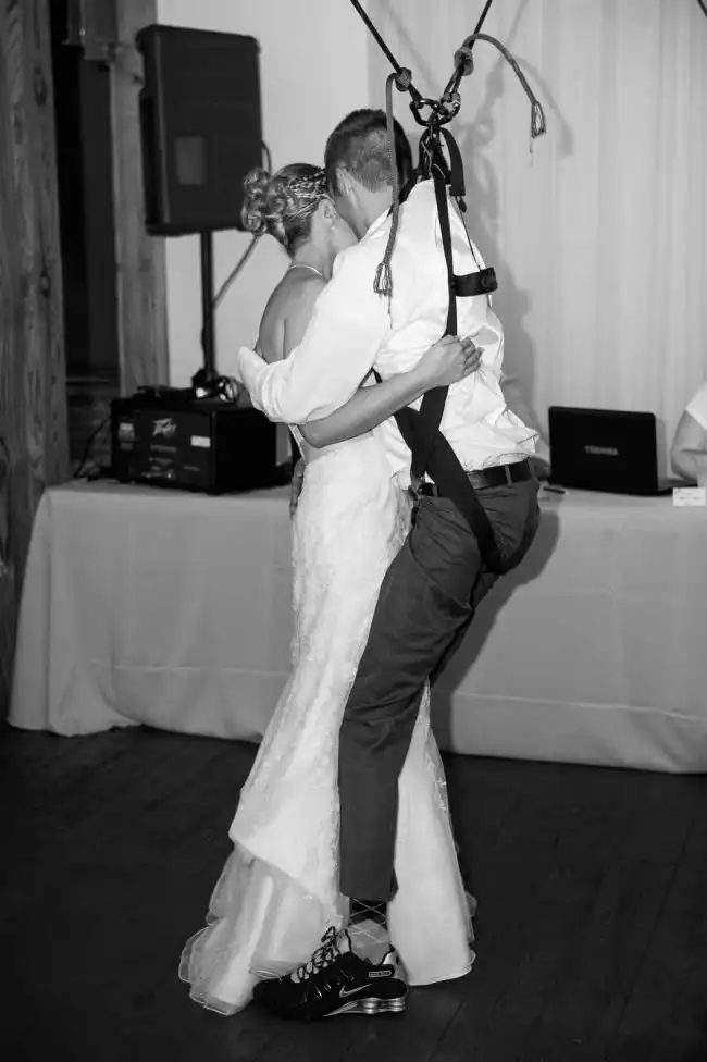 Парализованный ниже пояса Джои еще до страшного ДТП познакомился с девушкой Мишель, с которой у него завязались серьезные отношения. На свадьбе жених решил сделать приятный сюрприз своей невесте и станцевал с ней без инвалидного кресла. Осуществить подобное позволила система тросов, удерживавших парня в вертикальном положении. Сюрприз настолько растрогал невесту и гостей, что многие не смогли удержаться от слез.