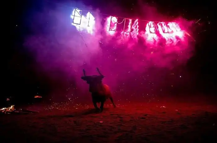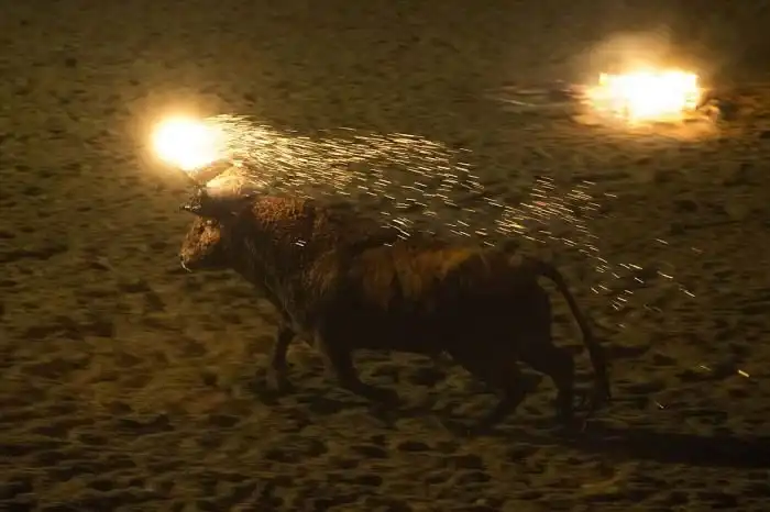 В испанской деревне Мединасели, которая находится к северо-востоку от Мадрида, проходит ежегодный фестиваль Toro de Jubilo, на котором местные мужчины убегают от испуганного быка с горящими факелами над головой.