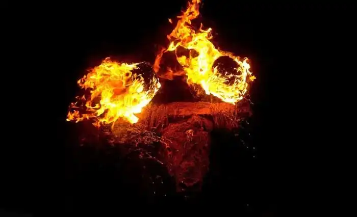 К голове и рогам животного привязывают два факела и поджигают их. Тело быка обмазывают грязью, чтобы летящие искры не привели к возгоранию шерсти. Затем отчаянное животное бегает по огороженной территории вместе с несколькими местными храбрецами.