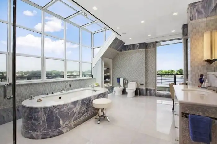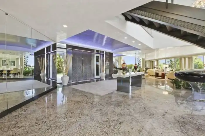Дом общей площадью 1300 квадратных метров имеет 14 комнат, многие из которых получили «стеклянные стены». Внутри есть 9 различных спален, несколько гостиных комнат, 8 ванных комнат и 2 дамские комнаты. Снаружи есть собственная 80-метровая набережная, мини-парк, бассейн площадью 92 «квадрата», павильон для вечеринок на 40 персон и причал для двух яхт или лодок.