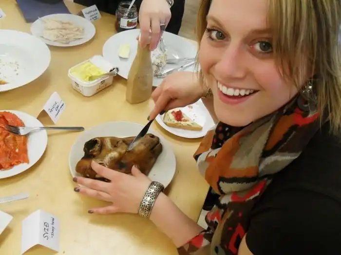 Одним из блюд национальной кухни Исландии является блюдо под названием свид, представляющее собой варенную баранью голову без мозгов. В общем, приятного всем аппетита…