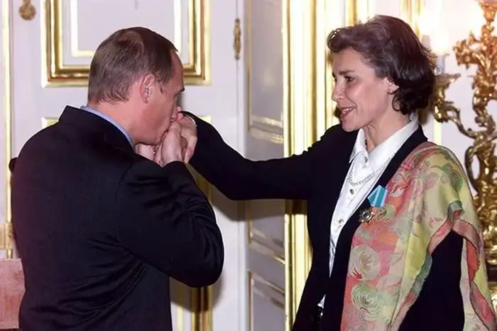 Путин и Клоди Андре-Деэ (в замужестве - Эньере), первая французская женщина-космонавт, 2000 год