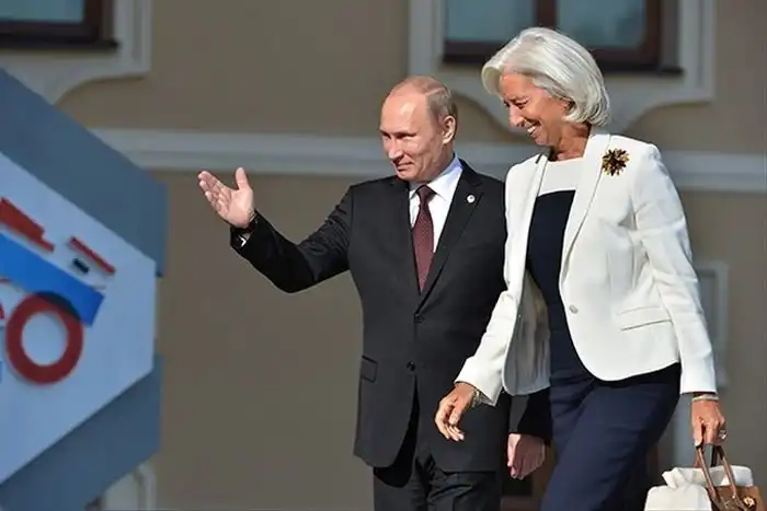 Путин в компании директора Международного валютного фонда Кристин Лагард, Санкт-Петербург, 2013 год