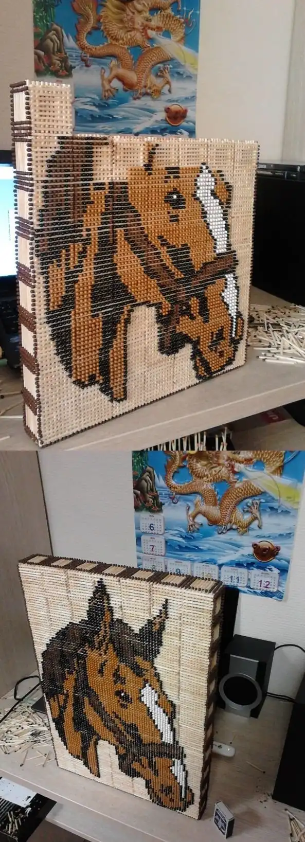 Использовано около 18 тыс. спичек. Время работы: 3 месяца. Спички окрашены вручную.